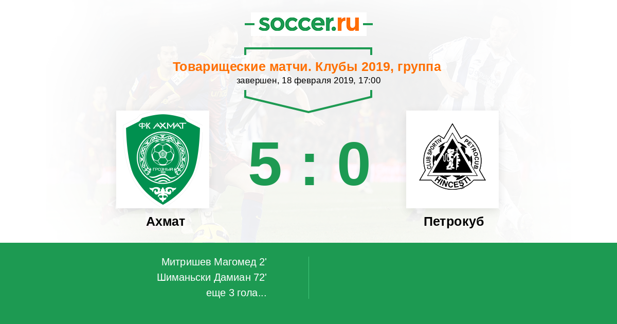 Протокол матча Ахмат против Петрокуб