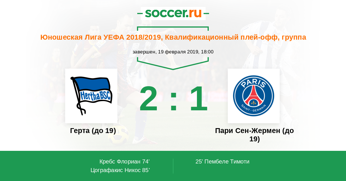 Протокол матча Герта (до 19) против Пари Сен-Жермен (до 19)