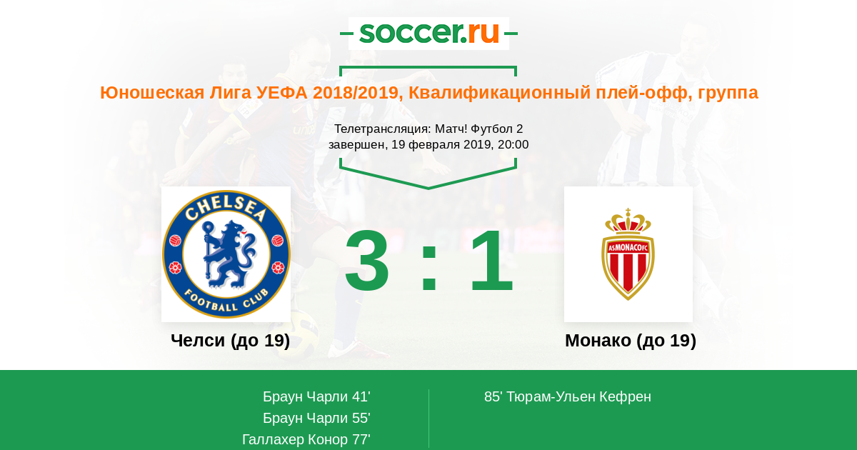 Протокол матча Челси (до 19) против Монако (до 19)