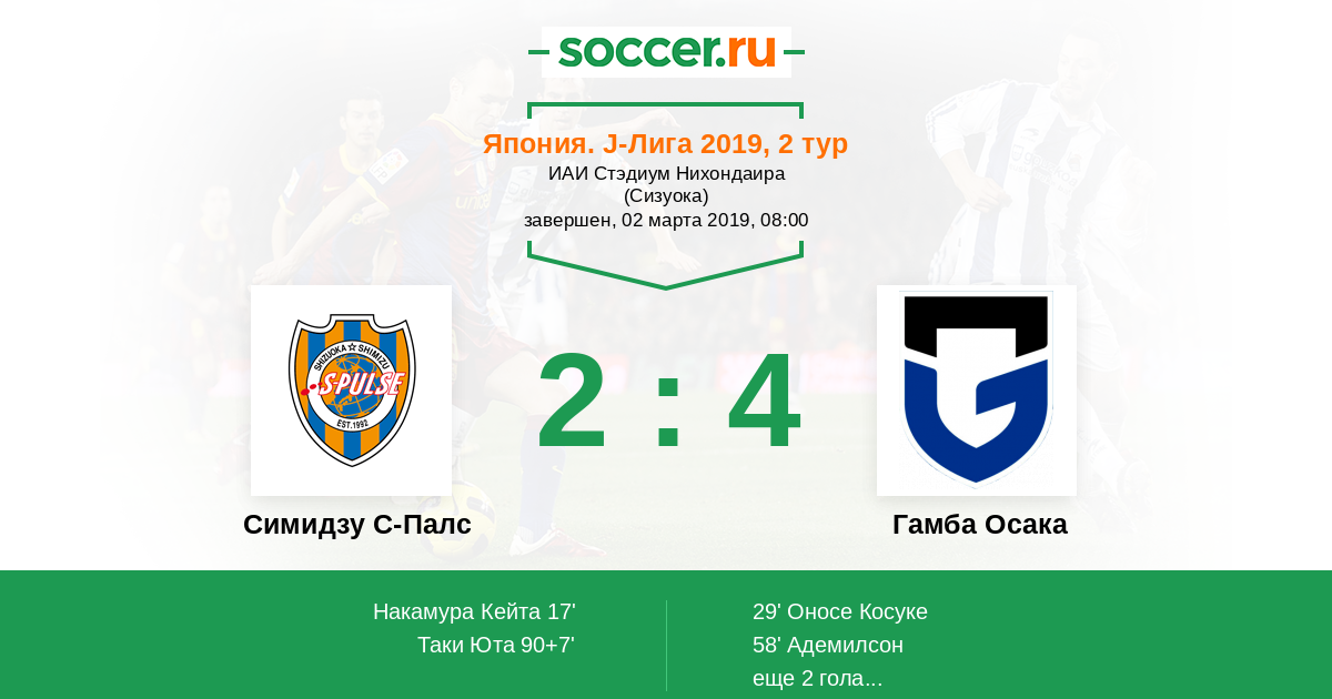 Протокол матча Симидзу С-Палс против Гамба Осака