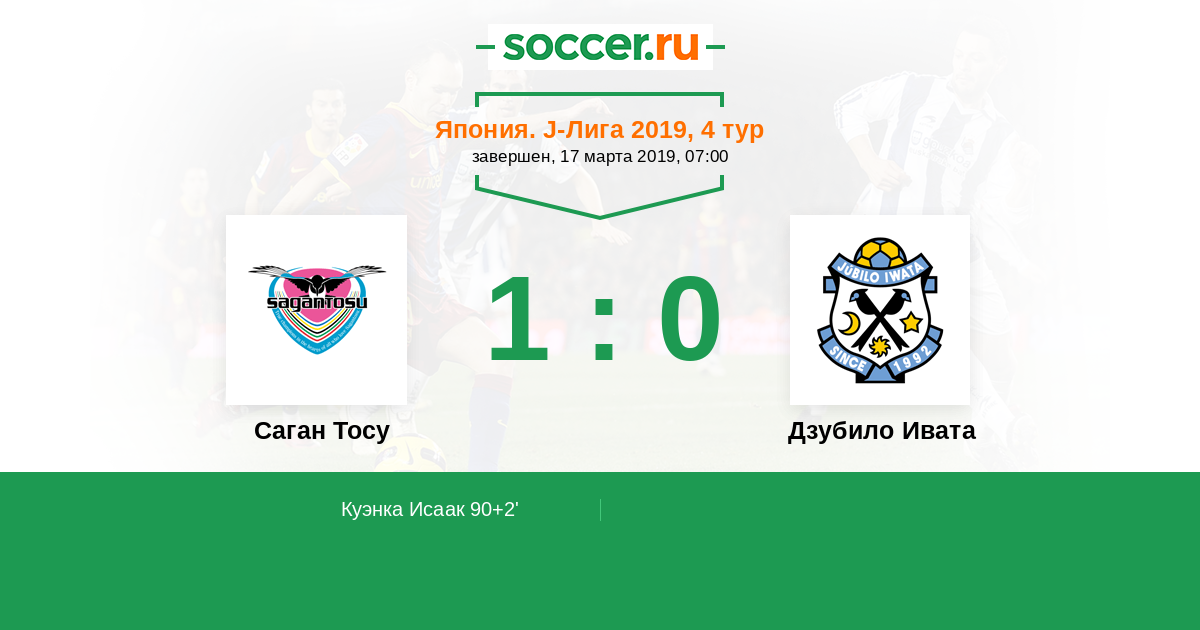 Протокол матча Саган Тосу против Дзубило Ивата