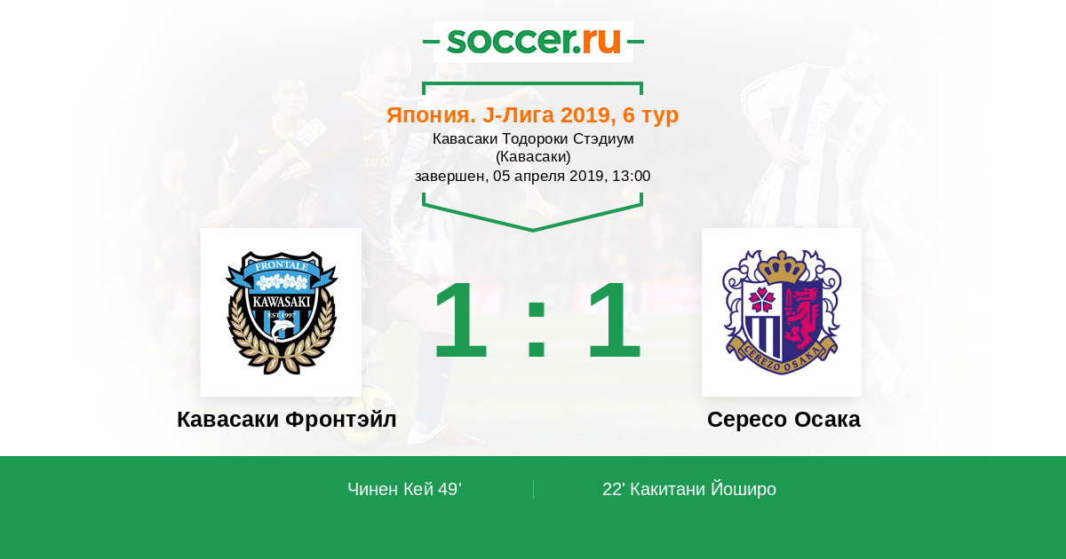 Протокол матча Кавасаки Фронтэйл против Сересо Осака