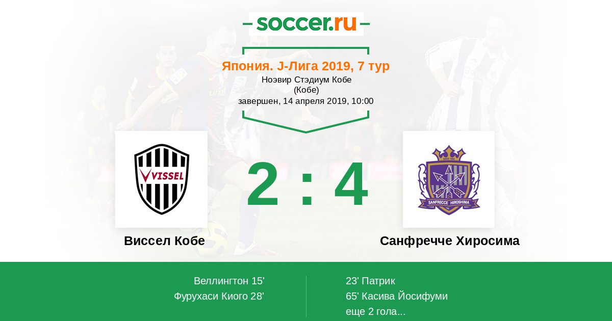 Протокол матча Виссел Кобе против Санфречче Хиросима