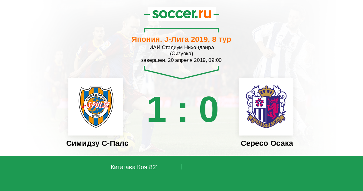 Протокол матча Симидзу С-Палс против Сересо Осака