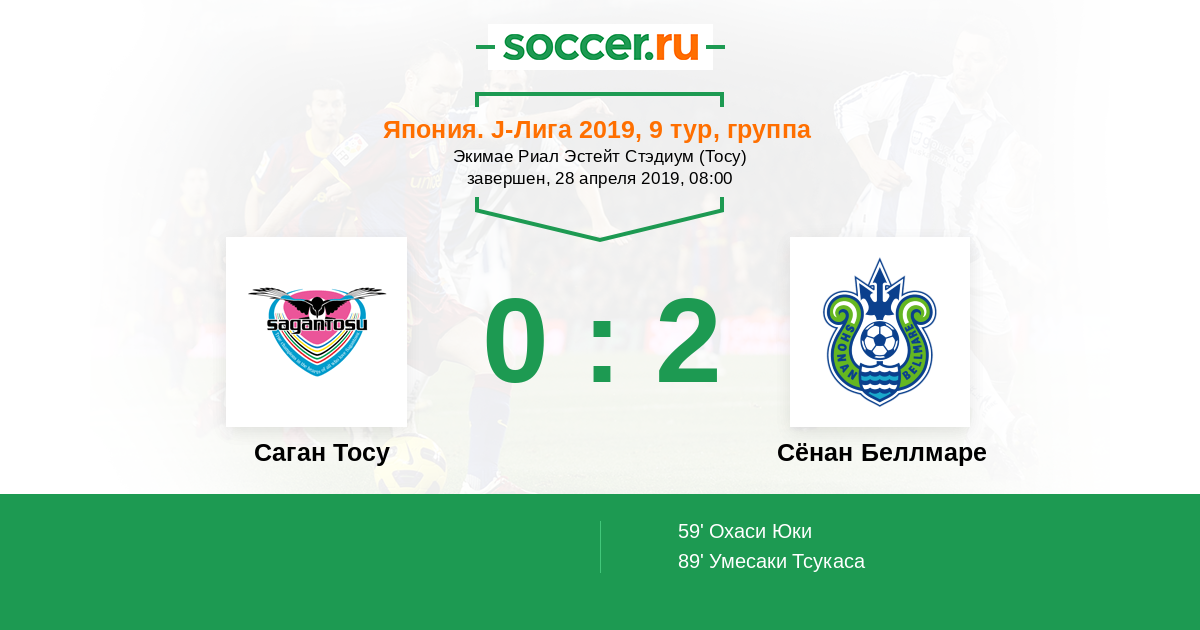 Протокол матча Саган Тосу против Сёнан Беллмаре