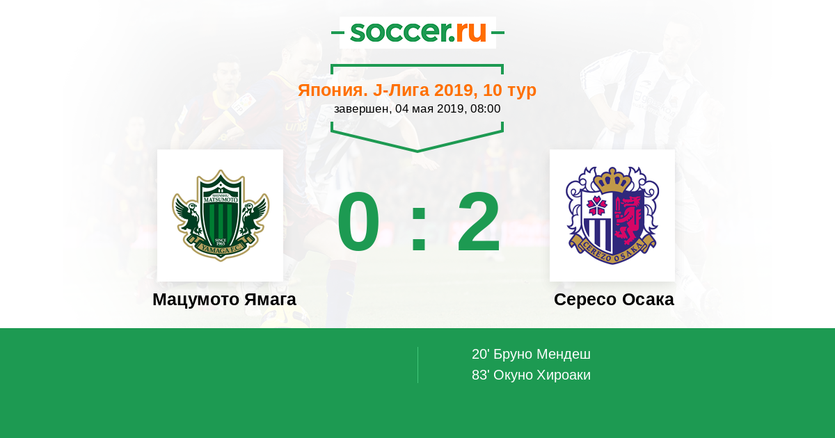 Протокол матча Мацумото Ямага против Сересо Осака