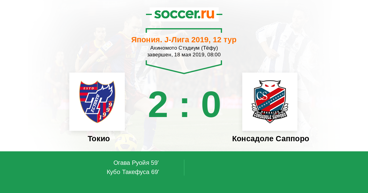 Протокол матча Токио против Консадоле Саппоро