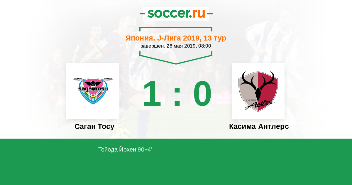 Протокол матча Саган Тосу против Касима Антлерс