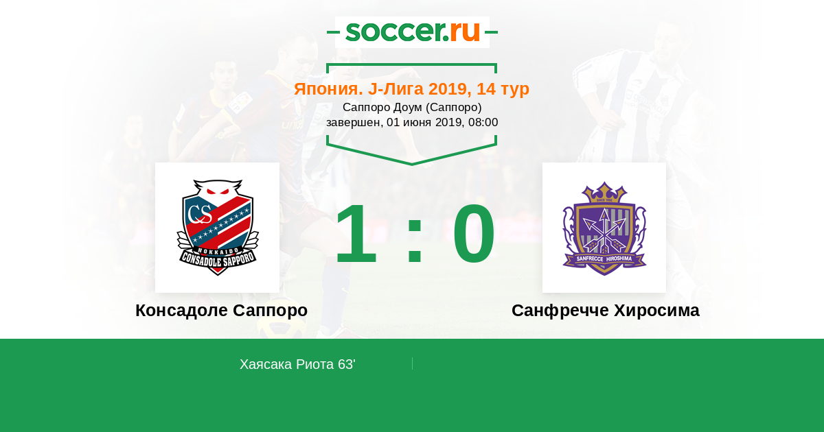 Протокол матча Консадоле Саппоро против Санфречче Хиросима
