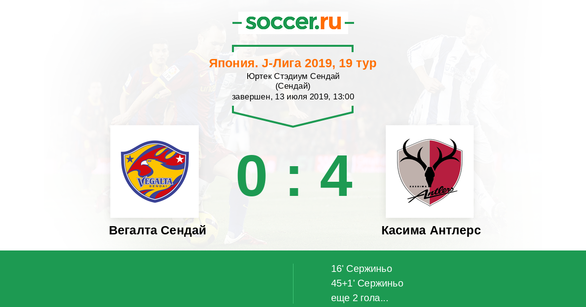 Протокол матча Вегалта Сендай против Касима Антлерс