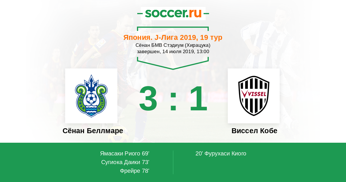 Протокол матча Сёнан Беллмаре против Виссел Кобе