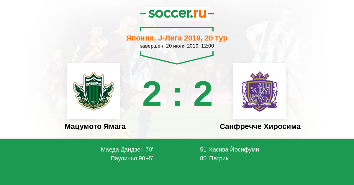 Гол90+5' (2:2) Паулиньо (14) (Сугимото Таро (20))