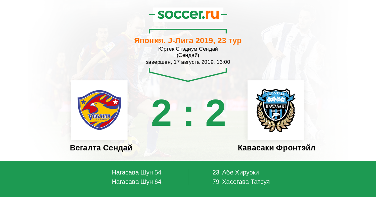 Протокол матча Вегалта Сендай против Кавасаки Фронтэйл