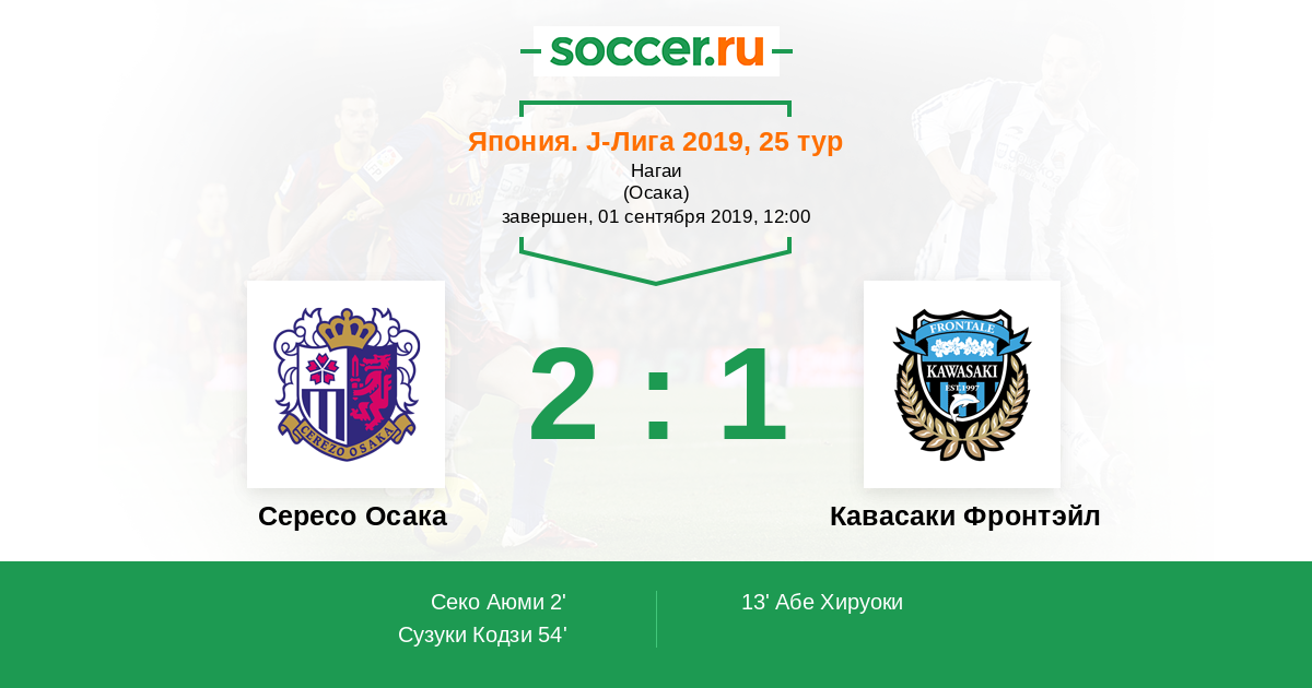 Протокол матча Сересо Осака против Кавасаки Фронтэйл