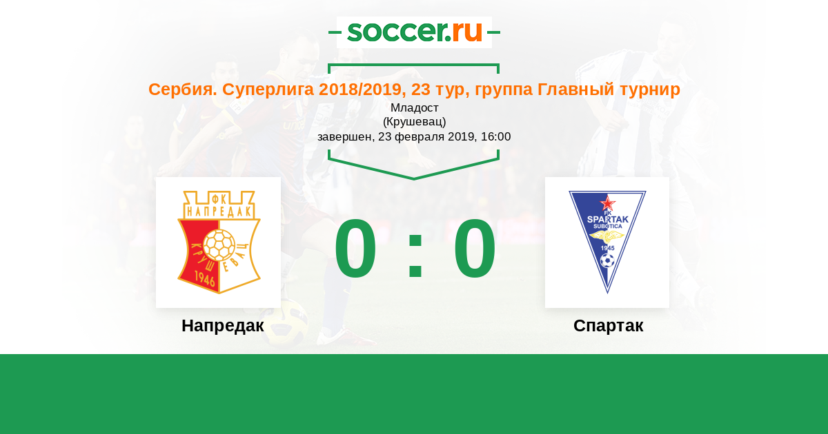 Протокол матча Напредак против Спартак Суботица