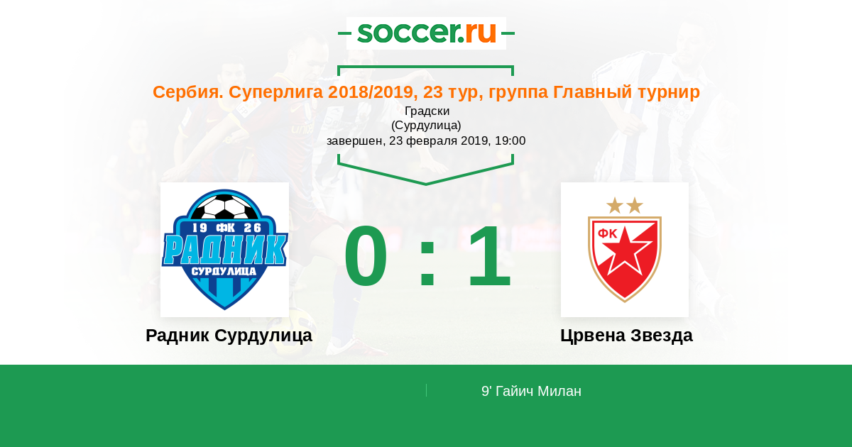 Протокол матча Радник Сурдулица против Црвена Звезда