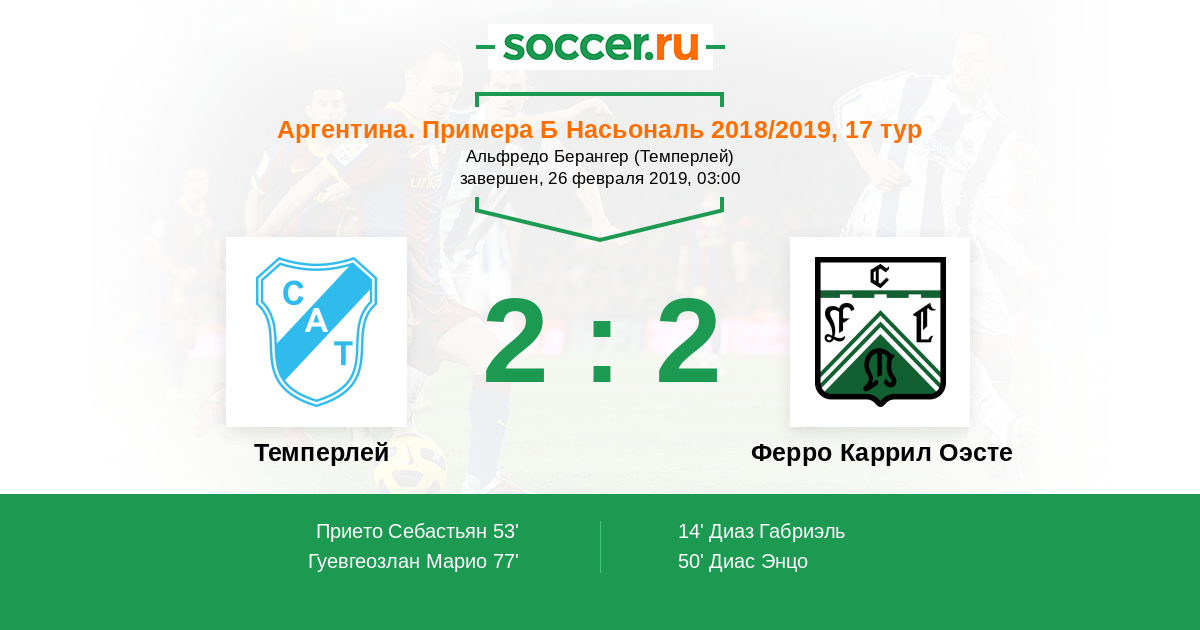 Протокол матча Темперлей против Ферро Каррил Оэсте