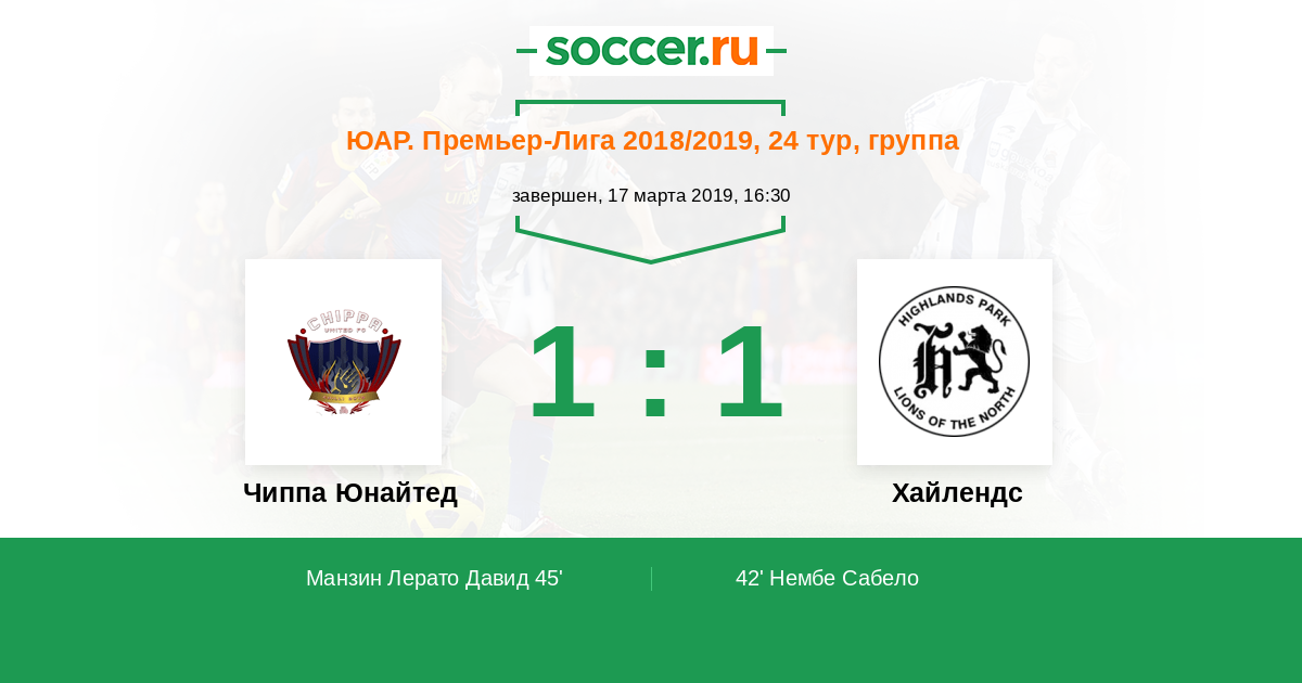 Протокол матча Чиппа Юнайтед против Хайлендс