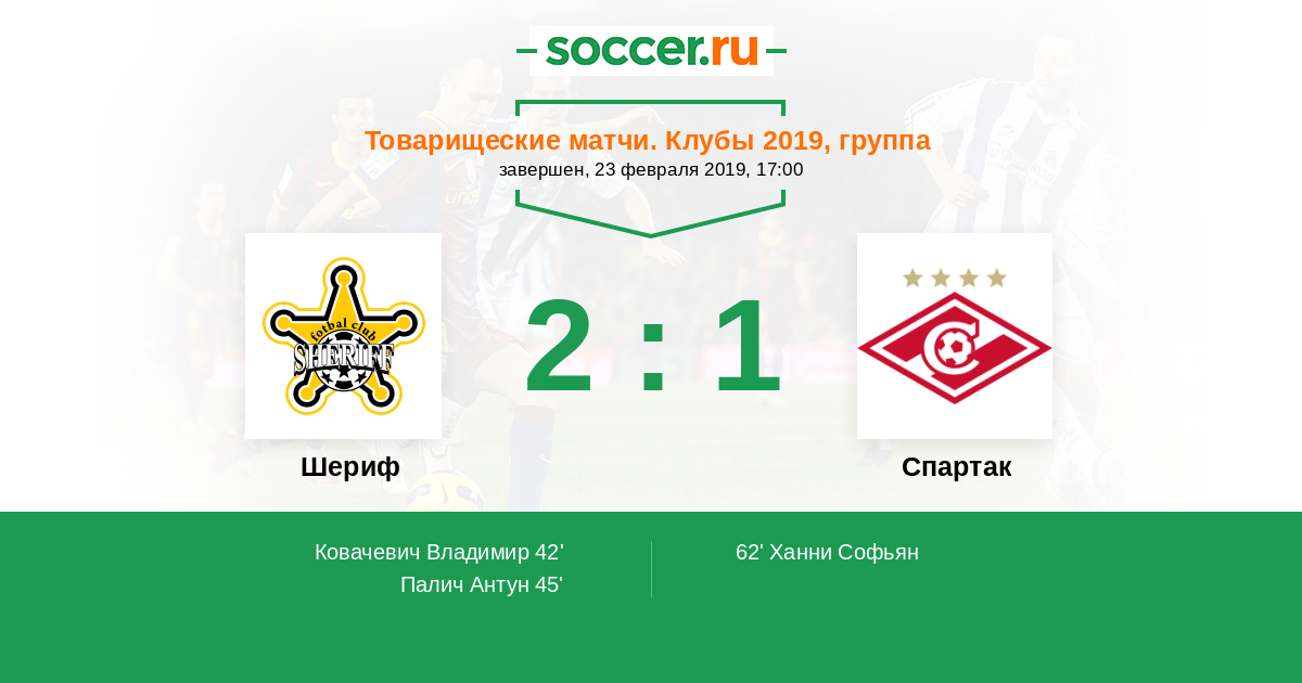 Протокол матча Шериф против Спартак