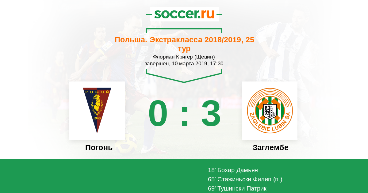 Протокол матча Погонь против Заглембе
