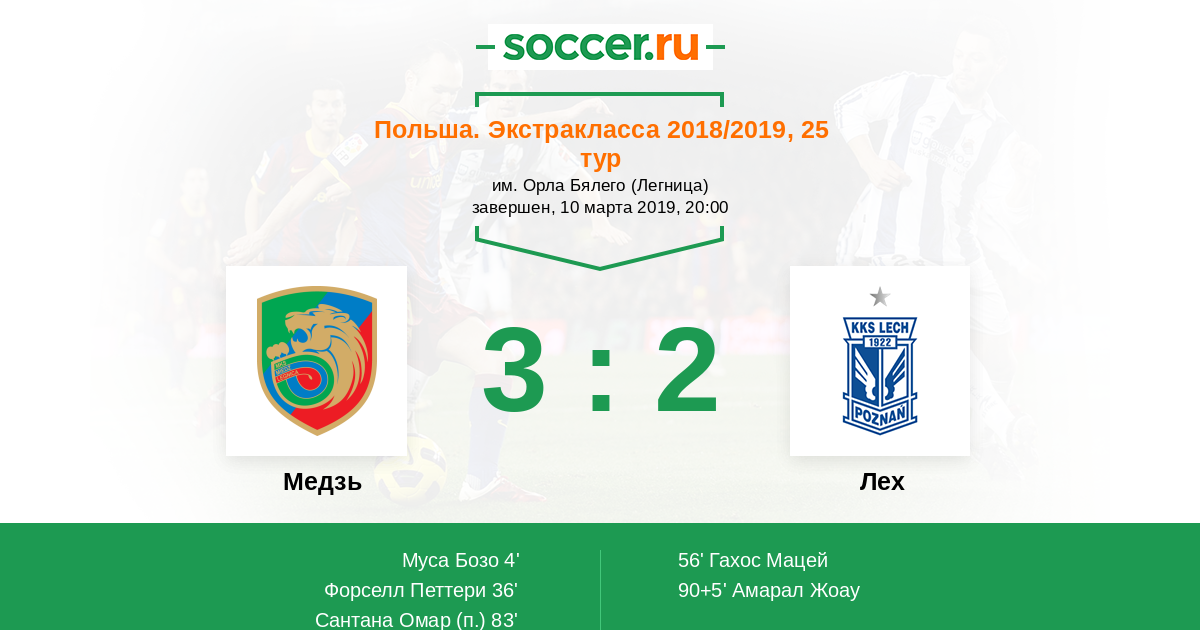 Протокол матча Медзь против Лех