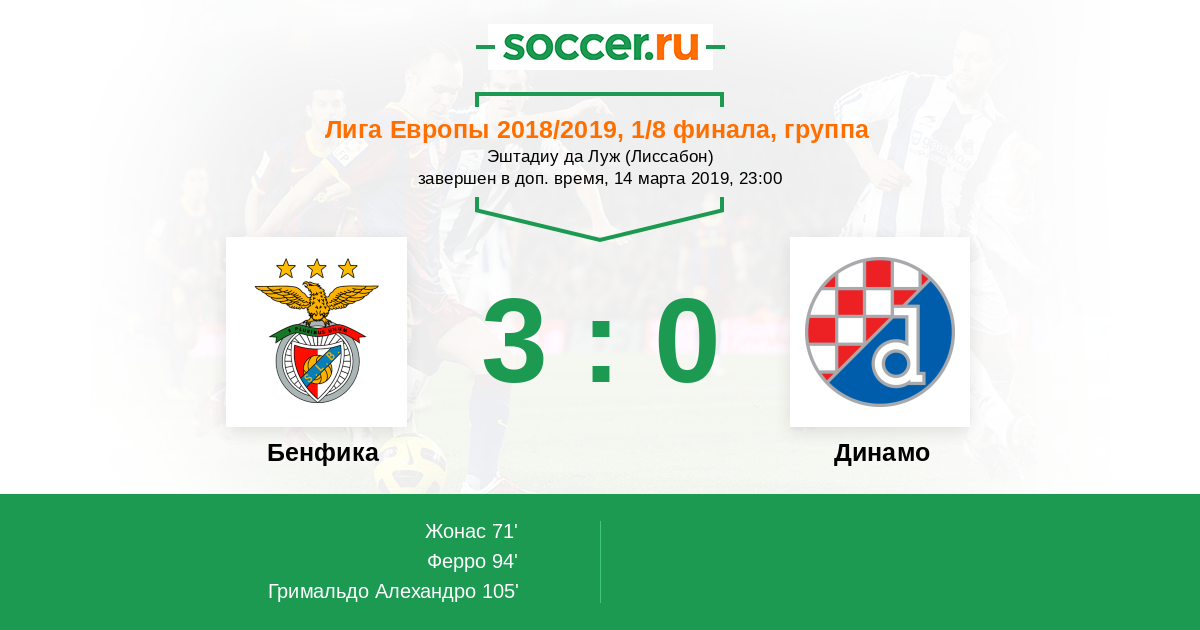 Протокол матча Бенфика против Динамо