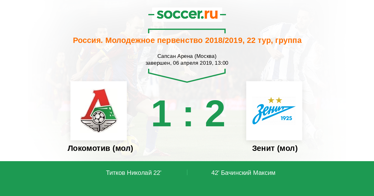 Протокол матча Локомотив (мол) против Зенит (мол)