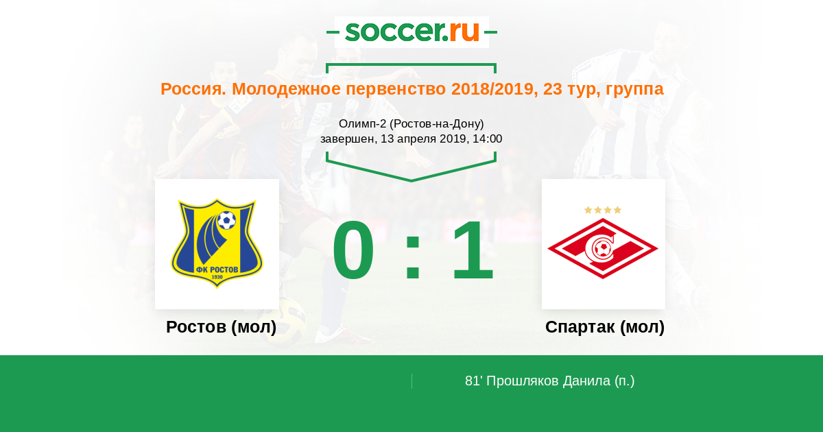 Протокол матча Ростов (мол) против Спартак (мол)