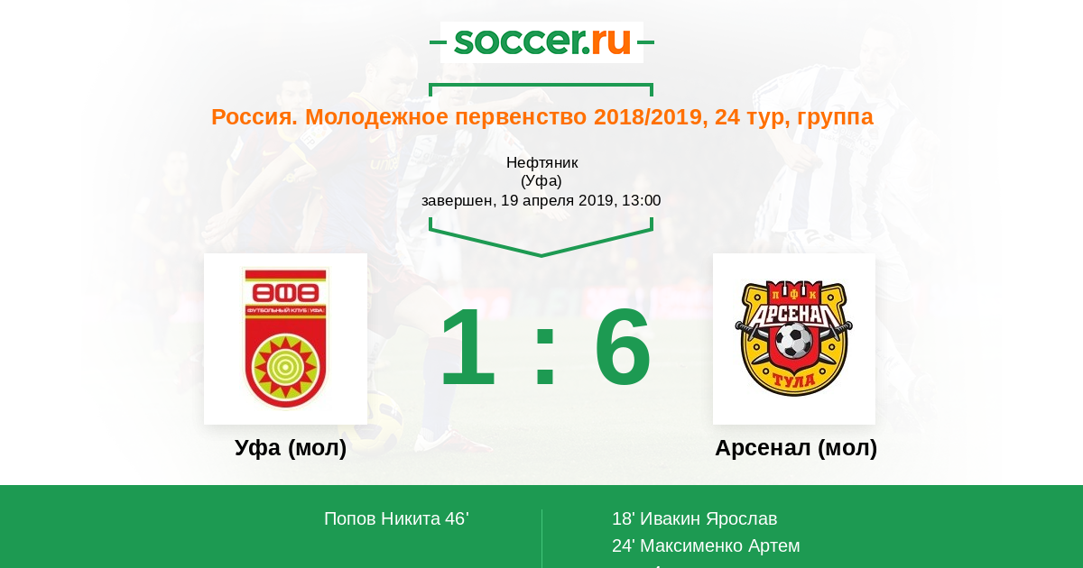 Протокол матча Уфа (мол) против Арсенал (мол)
