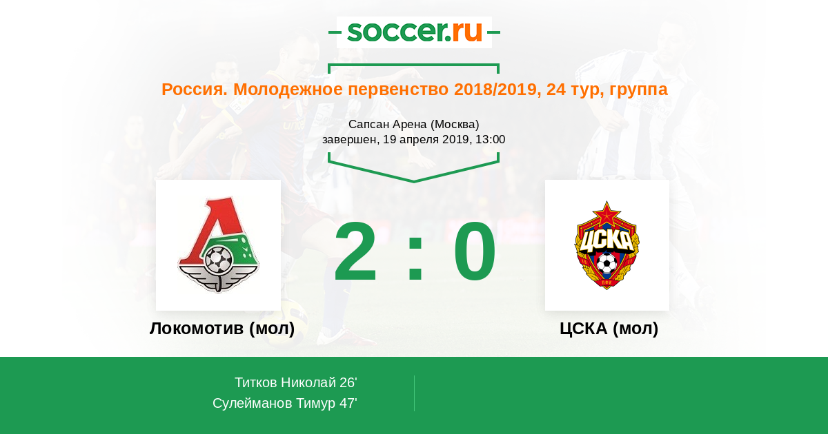 Протокол матча Локомотив (мол) против ЦСКА (мол)