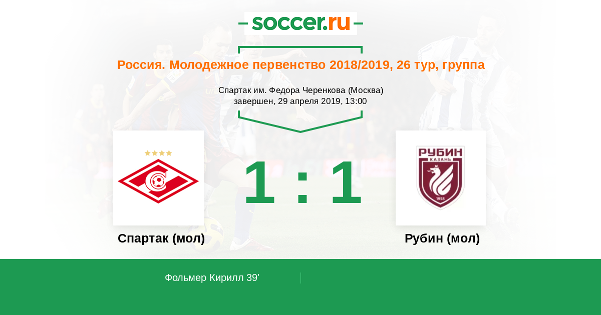 Протокол матча Спартак (мол) против Рубин (мол)