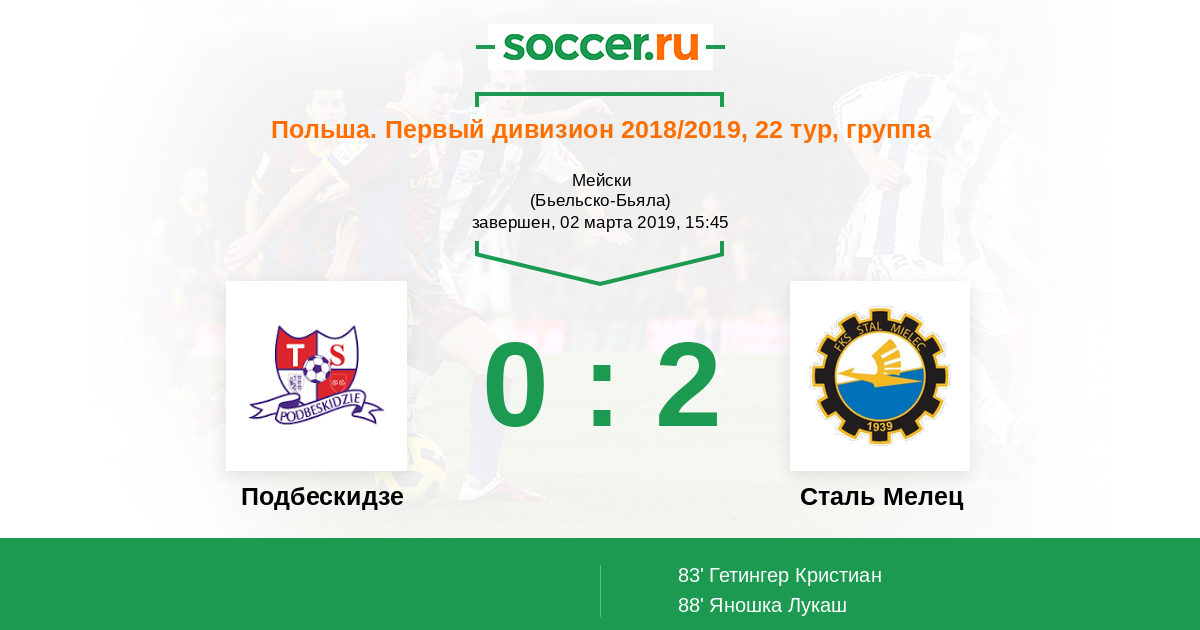 Протокол матча Подбескидзе против Сталь Мелец