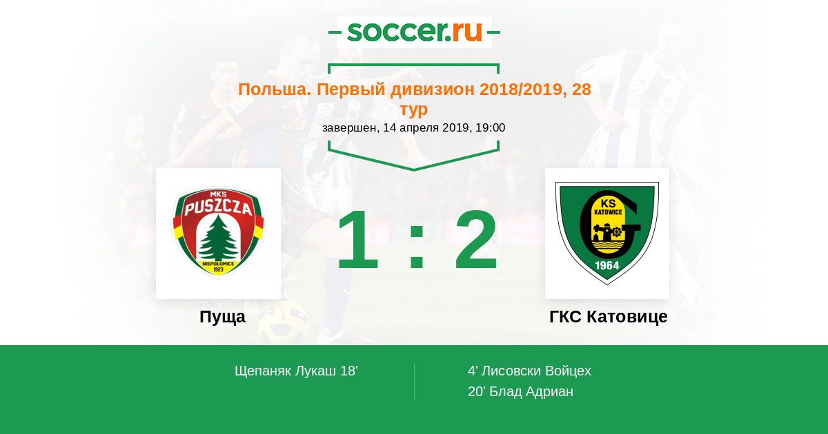 Протокол матча Пуща против ГКС Катовице