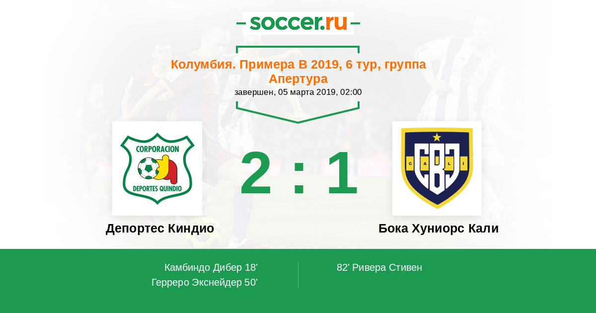 Протокол матча Депортес Киндио против Бока Хуниорс Кали