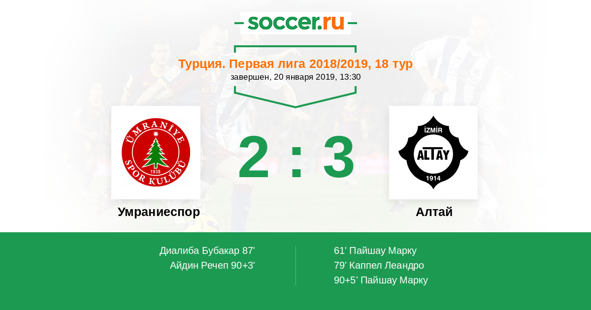 Протокол матча Умраниеспор против Алтай
