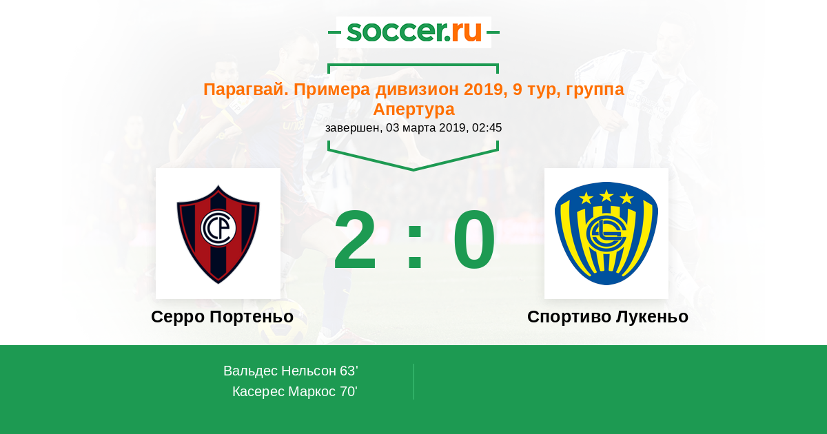 Протокол матча Серро Портеньо против Спортиво Лукеньо