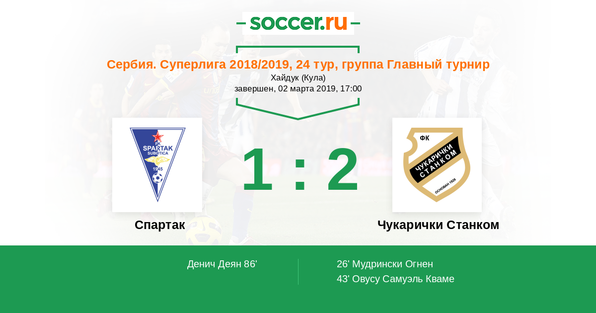 43' (0:2) Овусу Самуэль Кваме (Дочич Марко)
