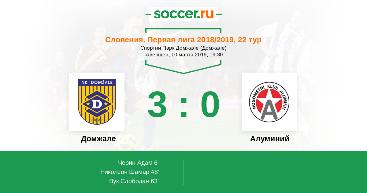 Протокол матча Домжале против Алуминий