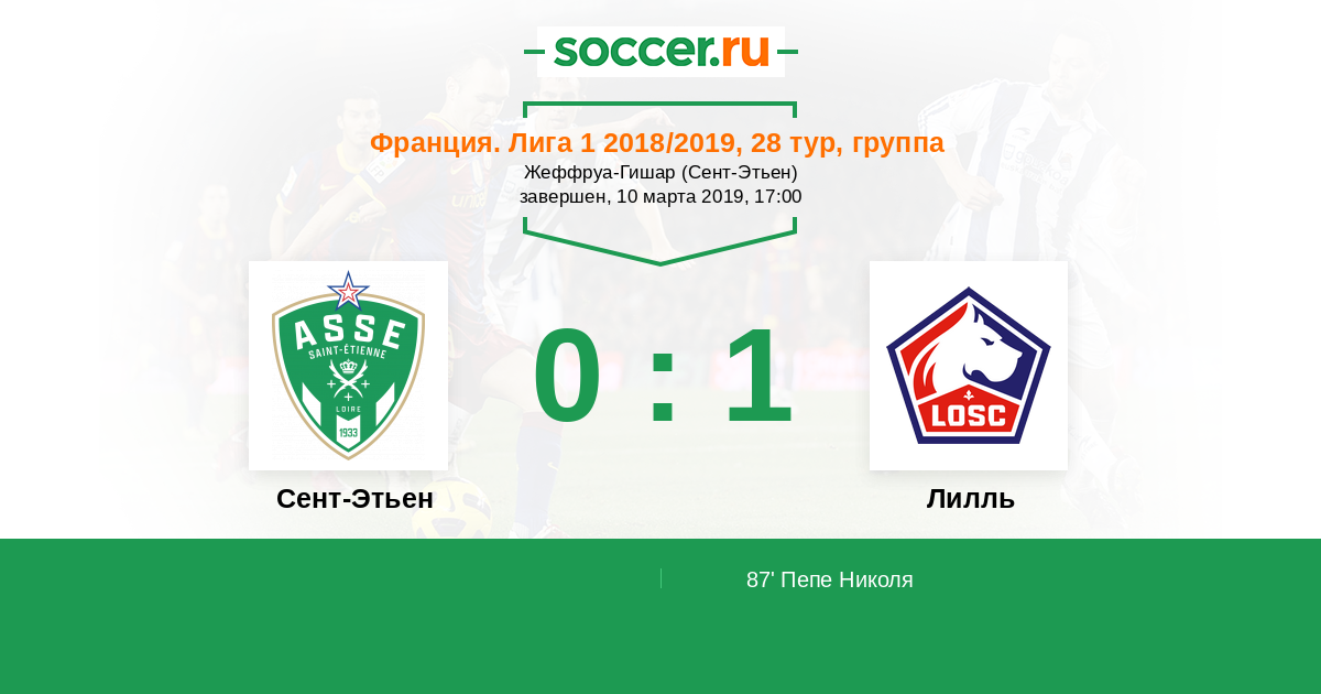 Протокол матча Сент-Этьен против Лилль