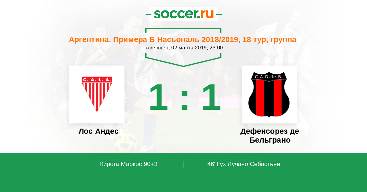 Протокол матча Лос Андес против Дефенсорез де Бельграно