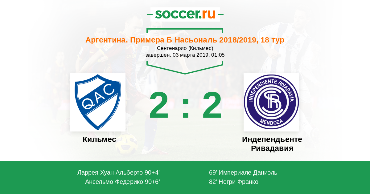 Протокол матча Кильмес против Индепендьенте Ривадавия