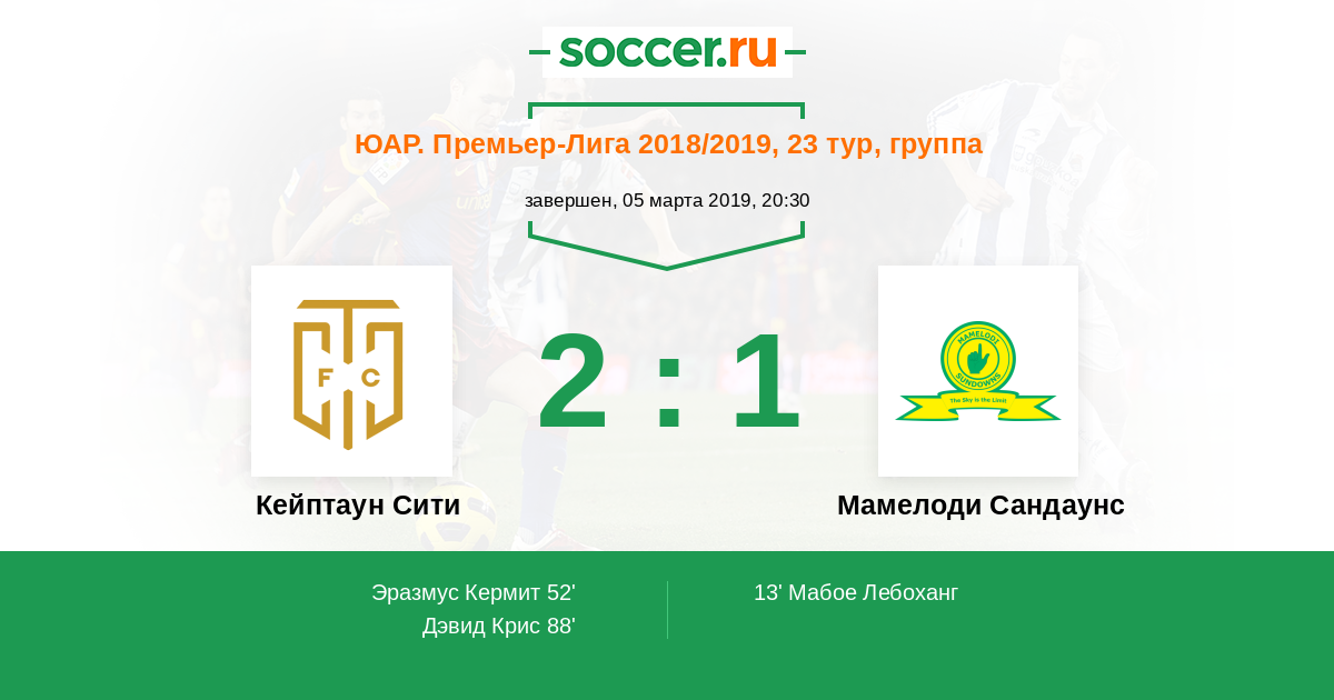 Протокол матча Кейптаун Сити против Мамелоди Сандаунс