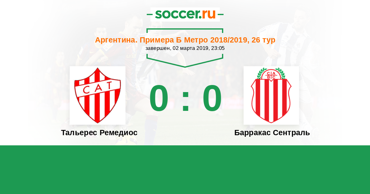 История матча Тальерес Ремедиос против Барракас Сентраль