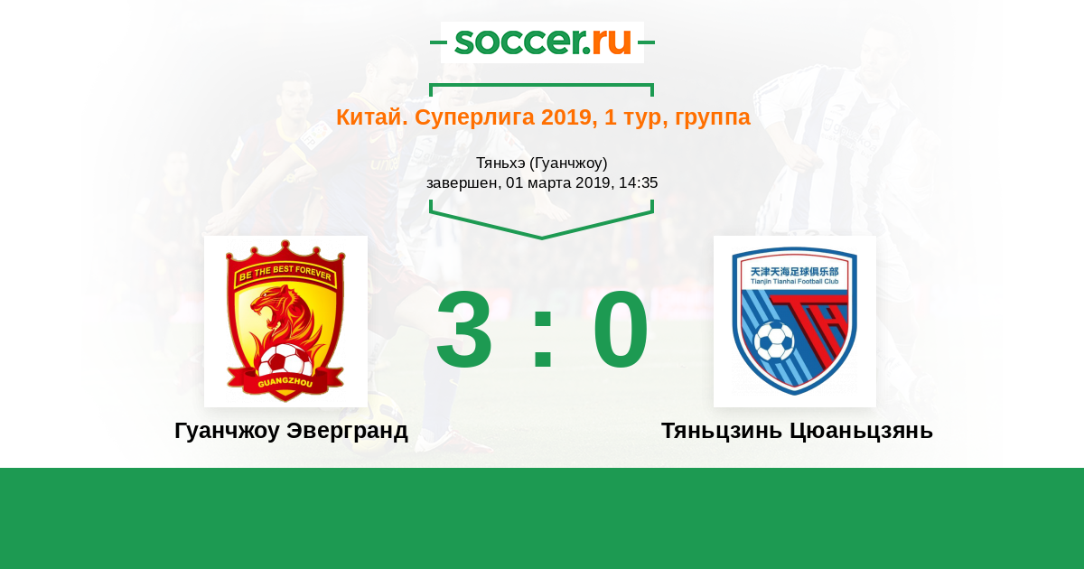 Протокол матча Гуанчжоу Эвергранд против Тяньцзинь Цюаньцзянь