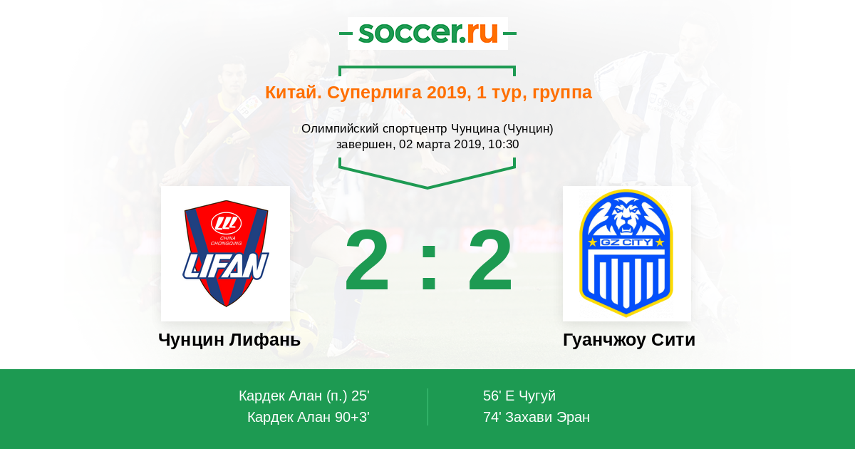 Протокол матча Чунцин Лифань против Гуанчжоу Сити