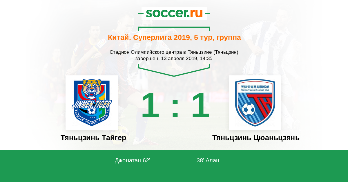Протокол матча Тяньцзинь Тайгер против Тяньцзинь Цюаньцзянь
