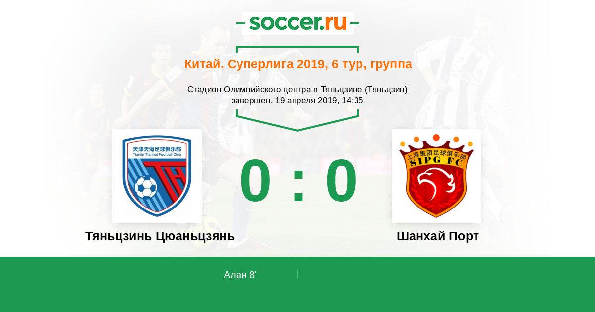 Протокол матча Тяньцзинь Цюаньцзянь против Шанхай Порт