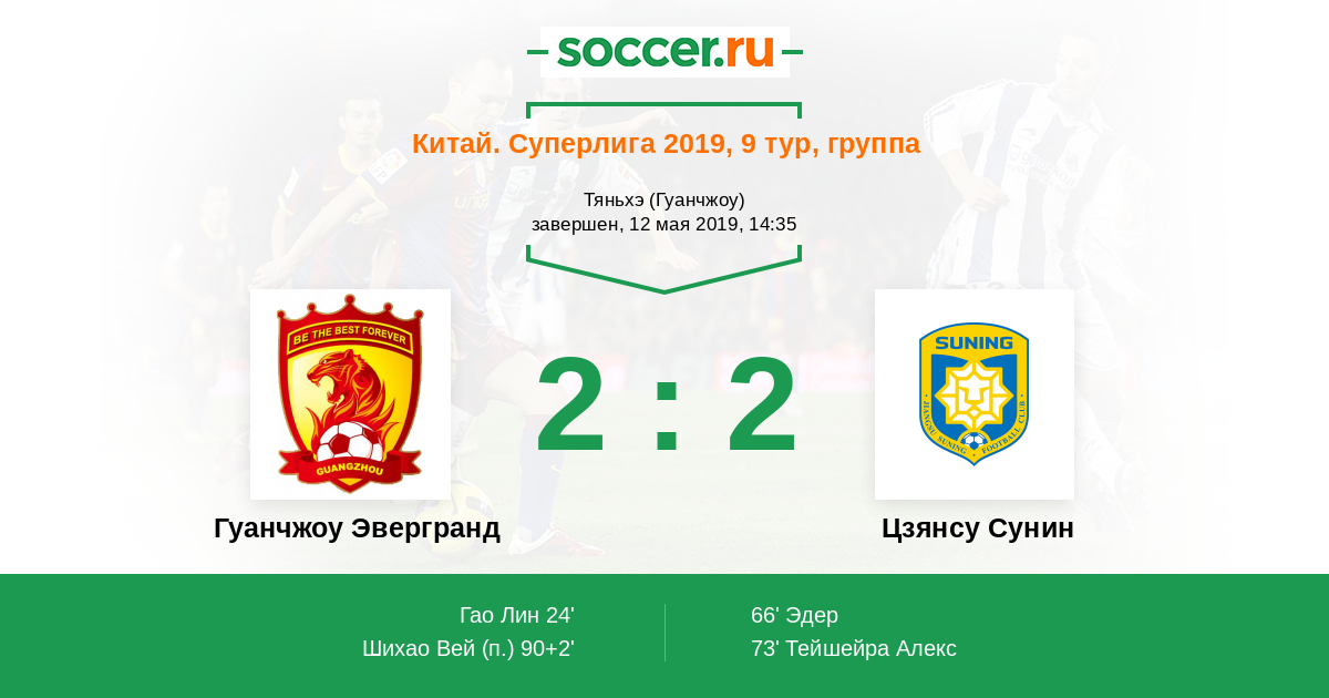 Протокол матча Гуанчжоу Эвергранд против Цзянсу Сунин