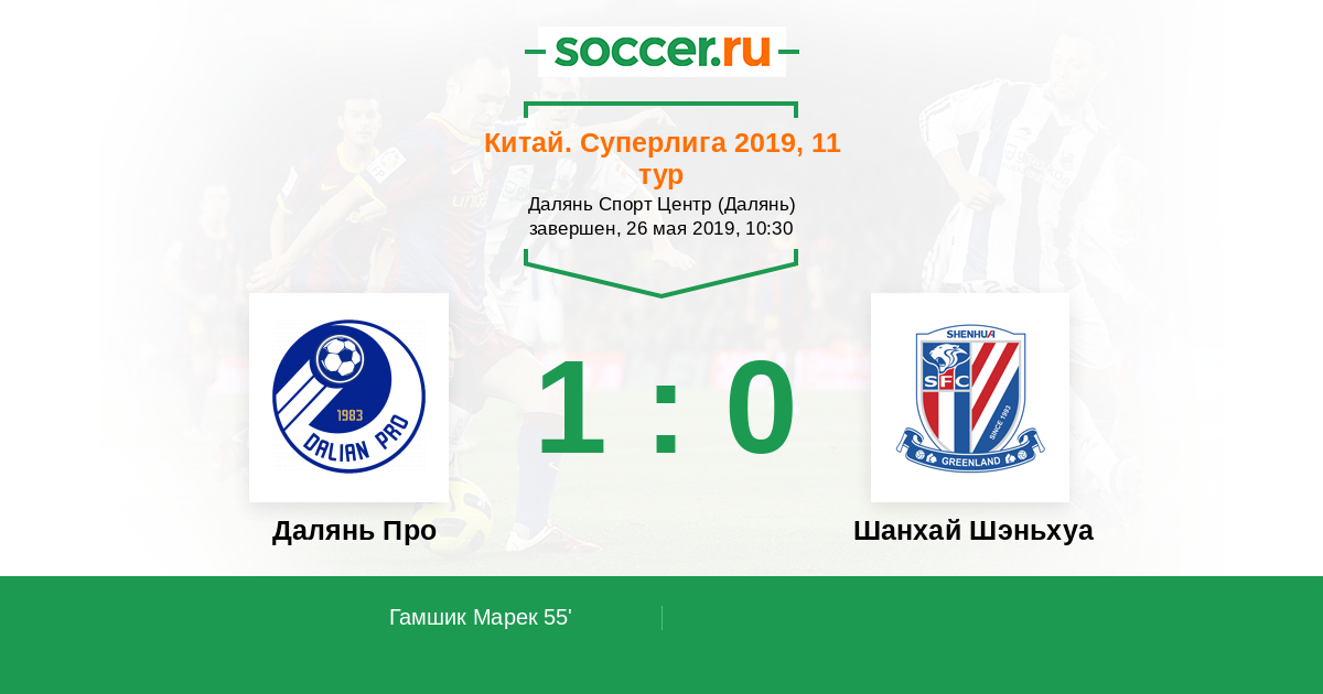 Протокол матча Далянь Про против Шанхай Шэньхуа