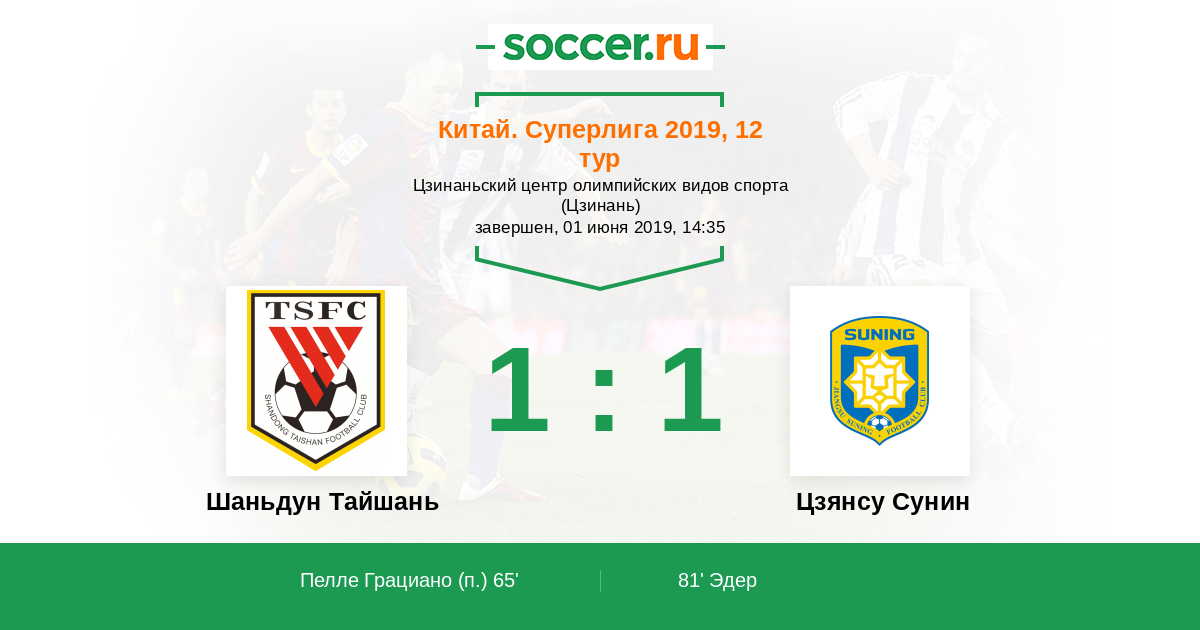 Протокол матча Шаньдун Тайшань против Цзянсу Сунин
